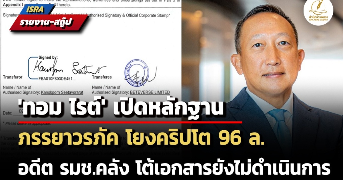 นายทอม ไรต์อ้างว่าการซื้อขายทั้งสองรายการซึ่งดำเนินการโดย น.ส.แคทรียา และนางกนกพรนั้นมีผู้ซื้อรายเดียวกัน คือบริษัท Beteverse Limited ซึ่งเป็นบริษัทเปลือกหอย (Shell Company) ที่จดทะเบียนในประเทศเซเชลส์ การชำระเงินทั้งสองรายการถูกโอนไปยังกระเป๋าสกุลเงินดิจิทัลเดียวกัน และธุรกรรมทั้งคู่เกิดขึ้นในวันเดียวกันอย่างแน่นอน (7 ม.ค. 2568) ยอดรวมทั้งหมดคือ 24,081,958.50 ดอลลาร์สหรัฐฯ (789,502,927บาท)