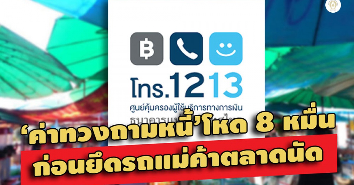 เปิดเสียงสนทนา ‘แม่ค้าตลาดนัด’ ถูกแบงก์แห่งหนึ่ง เรียกเก็บค่าทวงถามหนี้ 8 หมื่นบาท ก่อนโดนยึดรถ เจ้าหน้าที่แจงเป็นไปตามระเบียบธนาคาร ด้าน ‘ศคง.’ เผยปี 63 มีผู้ร้องเรียนถูกทวงถามหนี้ไม่เป็นธรรม 3,970 เรื่อง พบมีการเรียกเก็บค่าทวงหนี้ภาคสนามไม่น้อยกว่า 20,000-40,000 บาท/ครั้ง