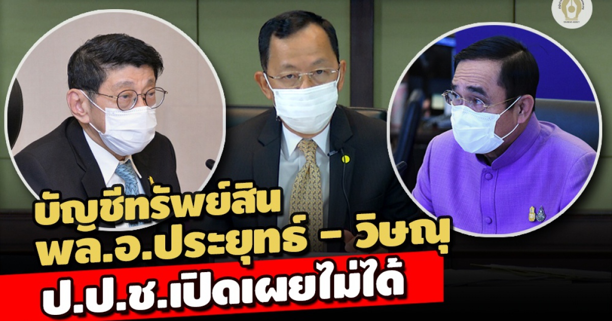 ประธาน ป.ป.ช. ยันโชว์ทรัพย์สิน‘บิ๊กตู่-วิษณุ’รอบ 2 ไม่ได้ เหตุ รธน.คุ้มครองข้อมูลส่วนบุคคล หวั่นถ้าเปิดไปจะถูกดำเนินคดีด้วย แม้แต่ ป.ป.ช. เองยังดูไม่ได้ แค่เก็บไว้เท่านั้น