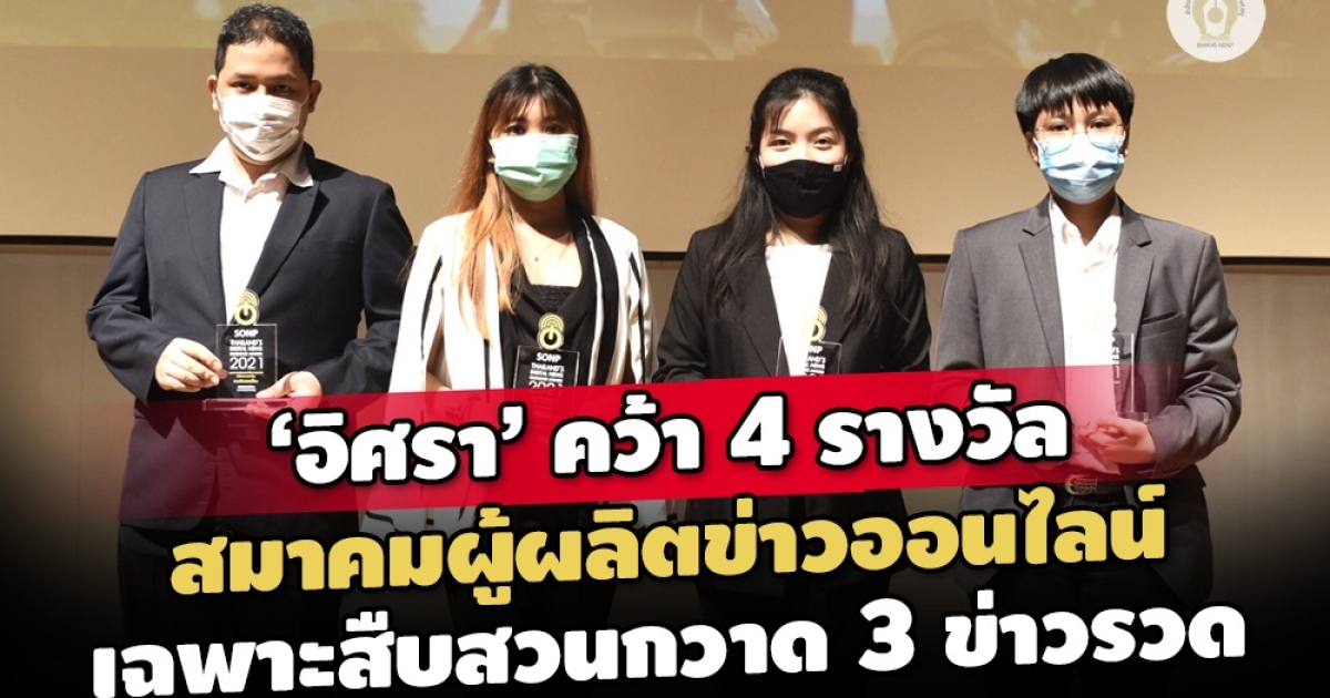 ‘อิศรา’ คว้า 4 รางวัล สมาคมผู้ผลิตข่าวออนไลน์ปี 2564 เฉพาะข่าวเชิงสืบสวนยอดเยี่ยม กวาด 1 รางวัลยอดเยี่ยม – 2 รางวัลชมชย ส่วนอีกรางวัลอินโฟกราฟิกได้ชมเชย 1 รางวัล