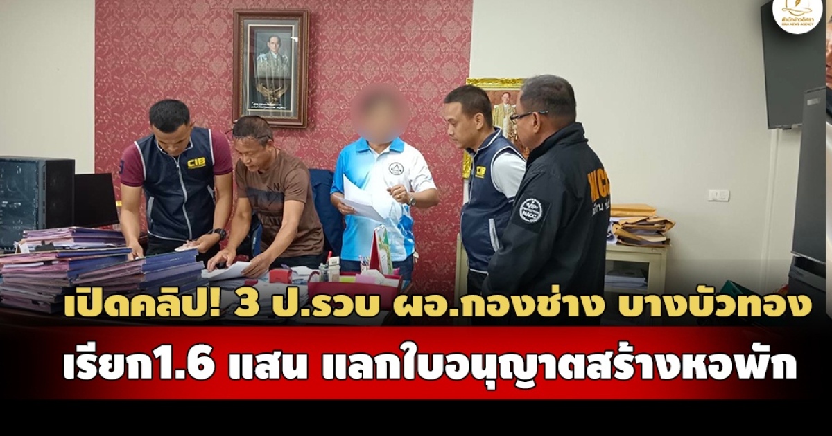 - 3 ป.รวบ ผอ.กองช่าง บางบัวทอง เรียก1.6 แสน แลกใบอนุญาตสร้างหอพัก-เจ้าตัวปฏิเสธ