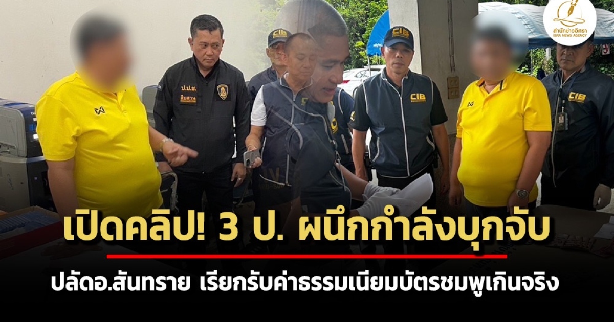 - 3 ป. ผนึกกำลังบุกจับปลัดอ.สันทราย เรียกรับค่าธรรมเนียมบัตรชมพูเกินจริง เงินสะพัดกว่า 3 ล.