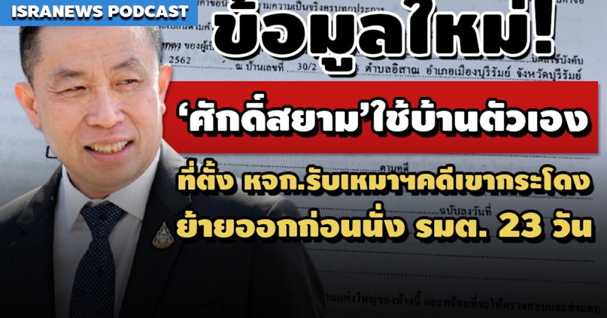 เปิดข้อมูลใหม่! ‘ศักดิ์สยาม ชิดชอบ’ ใช้บ้านตัวเองเป็นที่ตั้ง หจก.บุรีเจริญคอนสตรัคชั่น ตัวละครคดีที่ดินเขากระโดง ตั้งแต่ช่วงกลับไปถือหุ้นใหญ่ปี 58 แม้โอนหุ้นเกลี้ยงให้ ‘ศุภวัฒน์ เกษมสุทธิ์’ ปี 61 แต่ยังคงใช้ที่อยู่เดิม ก่อนแจ้งเปลี่ยน มิ.ย. 62 ก่อนได้รับโปรดเกล้าฯเป็น รมว.คมนาคม 23 วัน