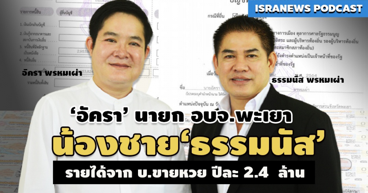 อ่านเพิ่มเติม : ‘อัครา’ นายก อบจ.พะเยา น้องชาย ‘ธรรมนัส’ รายได้จาก บ.ขายหวย ปีละ 2.4 ล้าน