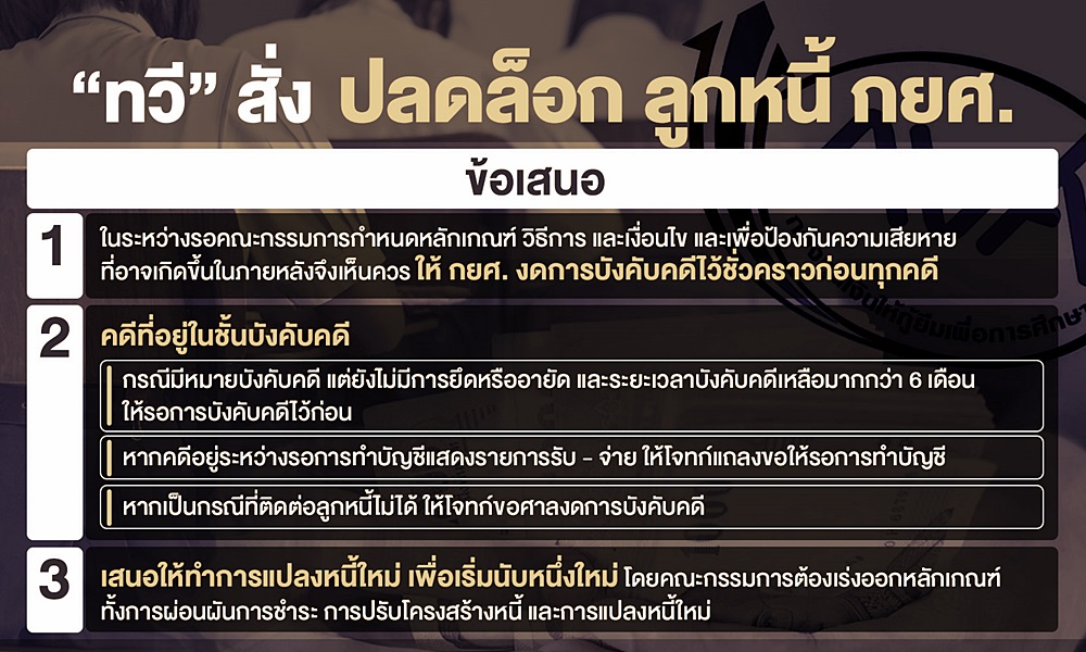 เรื่องนี้มีการจัดทำเอกสารรายละเอียดกฎหมาย สภาพปัญหา และแนวทางปฏิบัติ พร้อมขีดเส้นให้ กยศ.และกรมบังคับคดี เดินตามกรอบแนวทางนี้อย่างชัดเจน เร่งด่วน เพื่อบรรเทาทุกข์ให้ผู้กู้ กยศ.ทุกราย