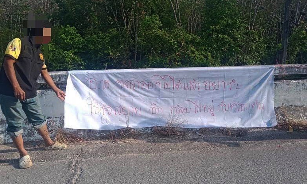 @@ แขวนป้ายผ้า 4 ตำบลทุ่งยางแดง ขู่ อส.โผล่อีก