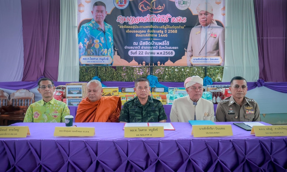 เมื่อวันเสาร์ที่ 22 มี.ค.68 ที่มัสยิดบ้านพลีใต้ อ.นาทวี จ.สงขลา นายนิพนธ์ ชายใหญ่ ผู้ช่วยเลขาธิการ ศอ.บต. (จากสำนักงานปลัดกระทรวงมหาดไทย หรือ สป.มท.) ร่วมกิจกรรมละศีลอด (เปิดปอซอ) เนื่องในโอกาสเดือนรอมฎอน โดยมี พล.ท.ไพศาล หนูสังข์ แม่ทัพภาคที่ 4 / ผู้อำนวยการรักษาความมั่นคงภายในภาค 4 เป็นประธานเปิดกิจกรรม
