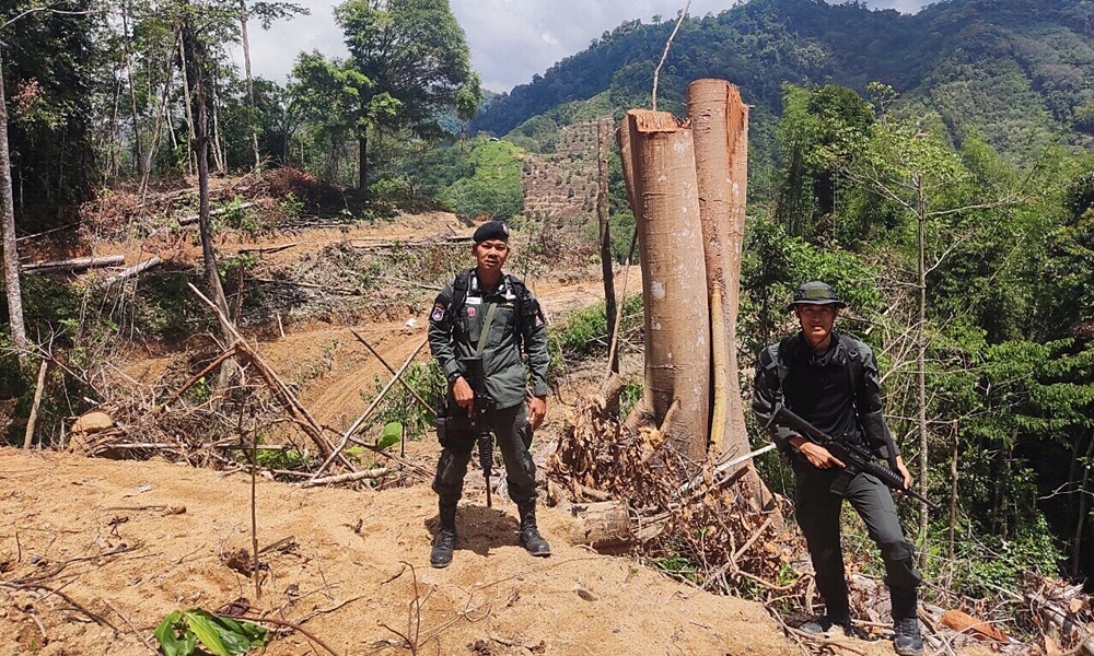 สืบเนื่องได้รับแจ้งจาก กอ.รมน.ภาค 4 สน.ว่ามีการลักลอบตัดไม้ทำลายป่าต้นน้ำ ใกล้ชายแดนไทย-มาเลเซีย จำนวนหลายจุด ในพื้นที่ ม.4 ต.คีรีเขต อ.ธารโต จ.ยะลา โดยคณะเจ้าหน้าที่ได้ตรวจพบแล้วจำนวน 1 จุด จึงร่วมเดินเท้าจากแนวถนนตรวจสอบเข้าถึงที่บริเวณแนวเชิงเขาขึ้นไปแนวเชิงเขา ผ่านสวนผลไม้ ผ่านป่าไม้สมบูรณ์ พบพื้นที่ป่าไม้มีร่องรอยการตัดถนนใหม่ พบร่องรอยรถไถของรถแบ็คโฮตัดถนน จึงตามรอยไถปรับเป็นถนนไปในพื้นที่ป่าสงวนต้นน้ำ จนถึงแนวสันเขา ห่างจากแนวชายแดนไทย-มาเลเซีย ประมาณ 1,800 เมตร เป็นท้องที่ กลุ่มบ้านไทยพัฒนา ม.4 ต.คีรีเขต อ.ธารโต จ.ยะลา