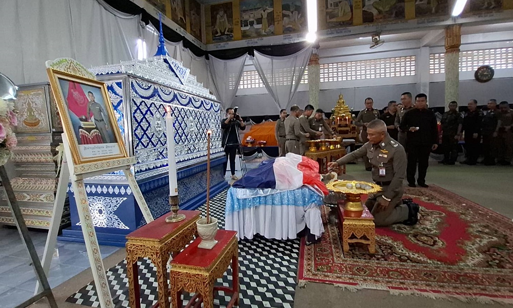 สำหรับศพ ส.ต.ท.ธัญเทพ หลังจากเสร็จพิธีรดน้ำ ญาติจะเคลื่อนย้ายโดยรถยนต์ไปบำเพ็ญกุศลตามหลักศาสนา ที่วัดกะพังสุรินทร์ พระอารามหลวง ต.ทับเที่ยง อ.เมือง จ.ตรัง