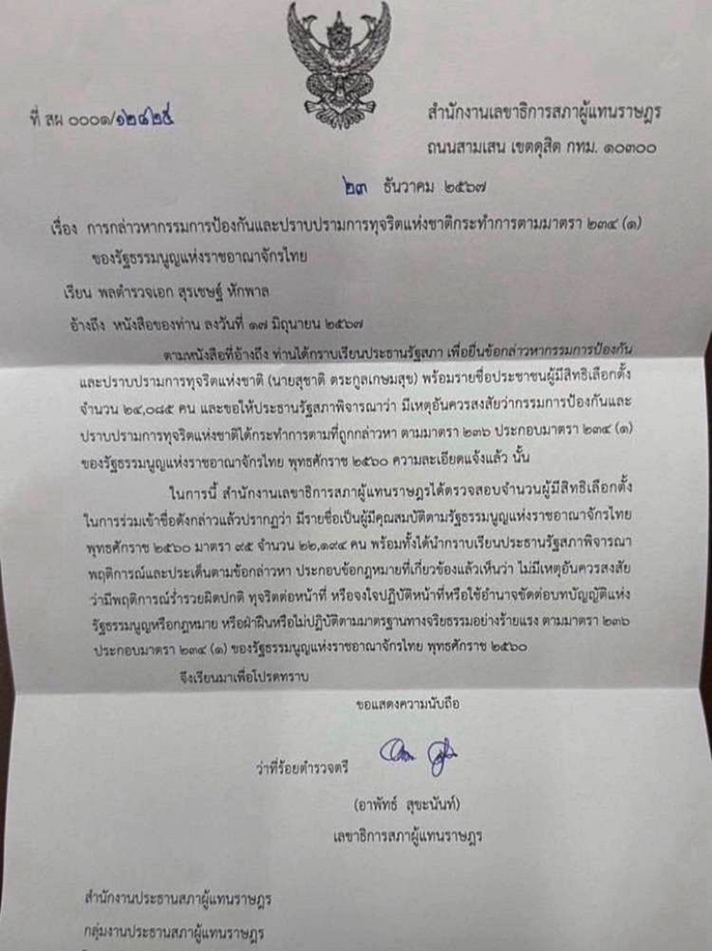 - ประชาชนผู้มีสิทธิเลือกตั้งจํานวนไม่น้อยกว่า 2 หมื่นคน เข้าชื่อกล่าวหากรรมการ ป.ป.ช.