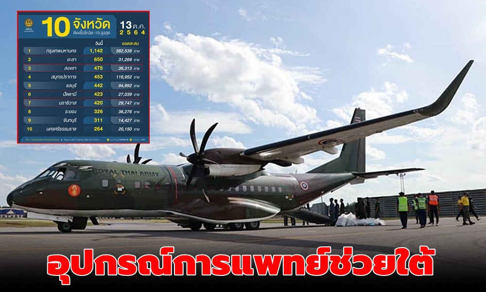 @@ทบ.สนับสนุนเครื่องบินขนทีมแพทย์และอุปกรณ์ช่วยใต้