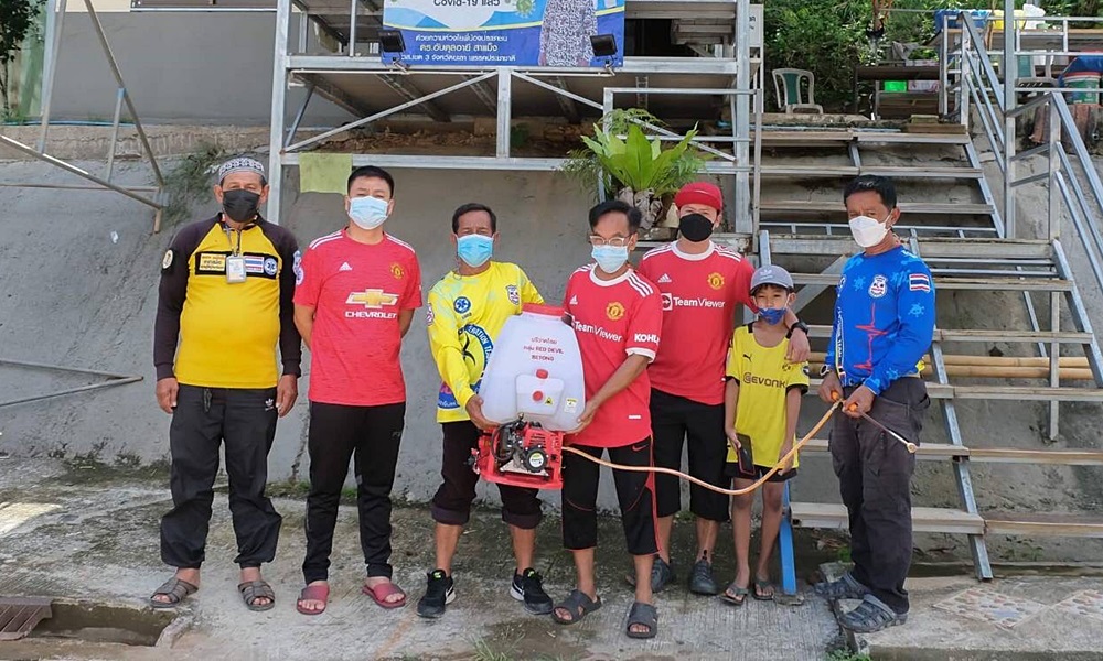 ส่วนนายวรพจน์ พูลภักดี ประธานกลุ่ม RED DEVIL BETONG นำสมาชิกในกลุ่มฯ ซึ่งเป็นกลุ่มแฟนคลับแมนยูเบตง นำเครื่องพ่นยาแบบเครื่องยนต์มามอบให้กับทีมเฉพาะกิจ ตอบโต้โควิด-19 ของสมาคมกู้ชีพกู้ภัยมุสลิมเบตง เพื่อนำไปพ่นยาช่วยเหลือผู้ได้รับผลกระทบจากการแพร่ระบาดของเชื้อโควิด-19