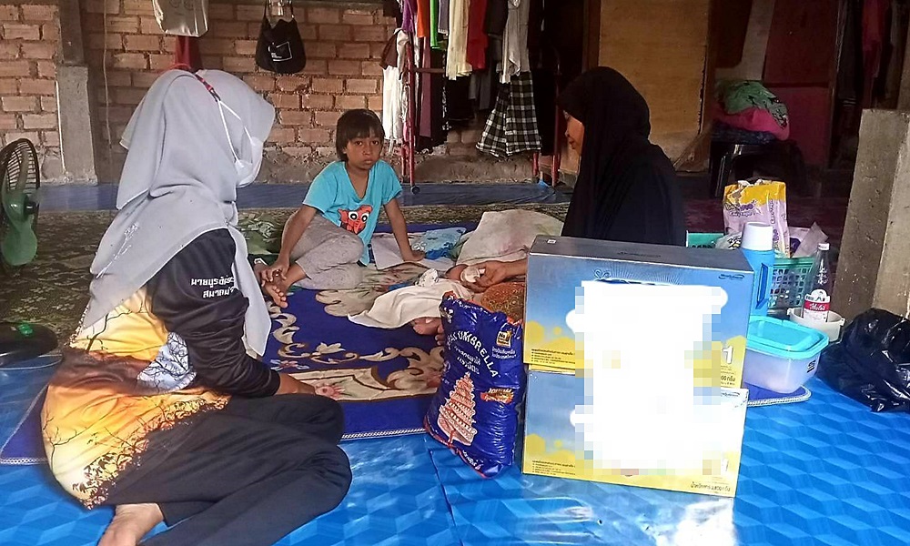 “อย่างเมื่อเร็วๆ นี้ ก็ได้รับการติดต่อให้ความช่วยเหลืออาหารเหลวสำหรับเด็กที่แม่ติดเชื้อโควิด-19 จำนวน 16 คน เพียงพอเป็นเวลา 1 เดือน กลุ่มเด็กที่แม่ติดโควิดเป็นอีกหนึ่งปัญหาใหญ่ในพื้นที่ เราได้รับร้องเรียนมาเยอะมาก ยังดีที่ได้รับการสนับสนุนจากผู้ใหญ่ใจดี นอกจากอาหารเหลวแล้ว ยังได้มอบสิ่งของจำเป็นอีกบางส่วนเพื่อนำไปมอบให้กับเด็กๆ และแม่ที่ติดเชื้อโควิด-19 ด้วย” รอกีเยาะ กล่าว