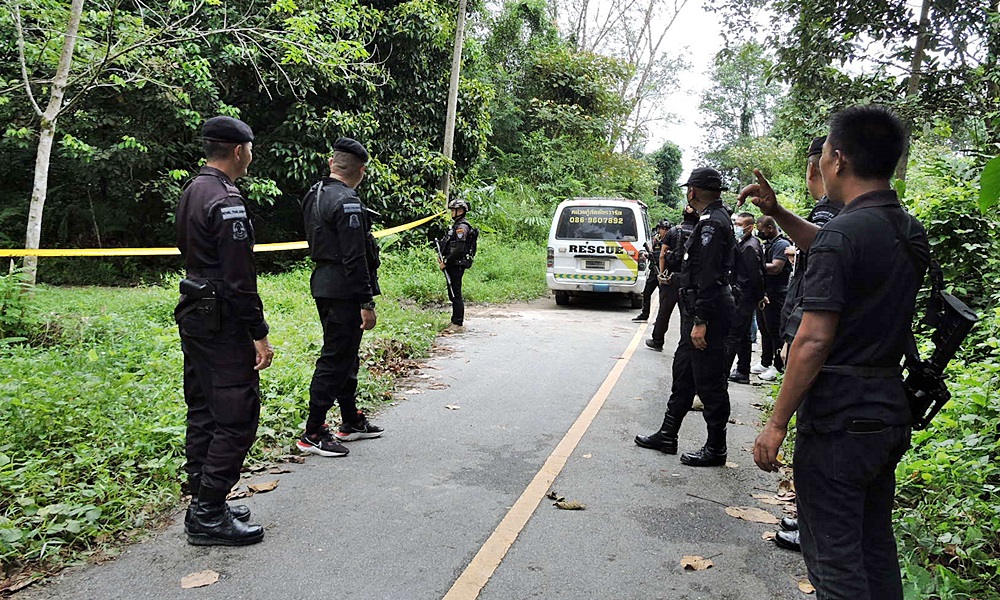 เมื่อเวลา 09.30 น.วันพฤหัสบดีที่ 4 ส.ค.65 พ.ต.อ.อาภากร วิรูปักษ์อารักษ์ ผกก.สภ.สุไหงปาดี พร้อมด้วย พ.อ.ภาคิน เกื้อกูล ผบ.ฉก.ทพ.48 ร.ต.อ.สุริยัน จันทร์น้ำใส รอง สว.สอบสวน สภ.สุไหงปาดี เจ้าหน้าที่ชุดเก็บกู้และทำลายวัตถุระเบิด จ.นราธิวาสและเจ้าหน้าที่กองพิสูจน์หลักฐาน จ.นราธิวาส รวมทั้งกำลังเจ้าหน้าที่ตำรวจทหารจำนวนหนึ่ง ร่วมเดินทางเข้าไปตรวจจุดเกิดเหตุยิงชาวบ้านที่ออกหาหมูป่าเสียชีวิตและเหตุลอบวางระเบิดดักรถของเจ้าหน้าที่ทหารพราน