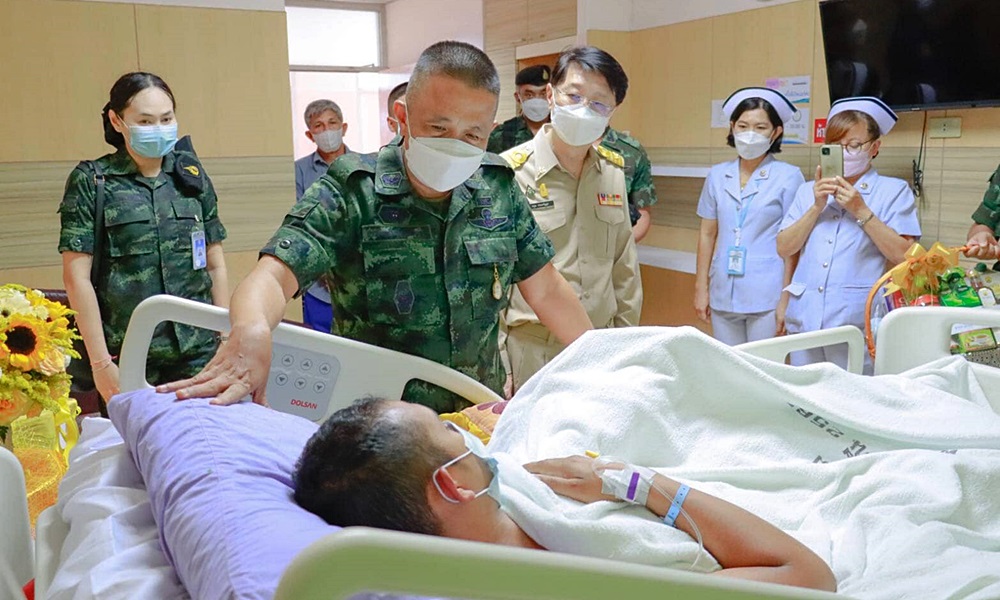 อัปเดตอาการแม่ทัพภาค 4 เข้ารับการรักษา 3 สัปดาห์หลัง ฮ.ลงจอดฉุกเฉิน ล่าสุดเริ่มใช้ Walker ช่วยพยุงเดินแล้ว แพทย์เผยไม่มีผลข้างเคียงเรื่องเจ็บปวด ส่วนกำลังพลบาดเจ็บอีก 4 นาย คาดพรุ่งนี้หมอให้กลับบ้านได้ 2 นาย ด้านรอง ผอ.รมน.ภาค 4 เยี่ยมมอบเงิน 2 อส.ไม้แก่น โดนลอบวางระเบิด