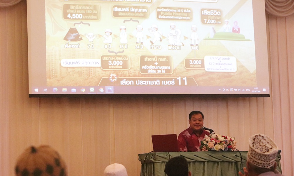 “พรรคประชาชาติมีสวัสดิการถ้วนหน้า ดูแลเด็กเล็กตั้งแต่อยู่ในครรภ์มารดาถึง 7 ขวบ 4,500 บาทต่อเดือน ดูแลเด็กวัยเรียน 8 ปีถึง 15 ปี 3,000 บาทต่อเดือน ล้างหนี้ กยศ. กู้ กยศ.ปลอดดอกเบี้ย ไร้เบี้ยปรับ แก้กฎหมายเพิ่ม เรียนฟรีมีคุณภาพถึงปริญญาตรี ครอบครัวเกษตรกรต้องมีที่ดินทำกินอย่างน้อย 20 ไร่ ชาวสวนยางพารามีรายได้ 30,000 บาทต่อเดือน ราคายางพารามีเสถียรภาพ 80 บาทต่อกิโลกรัมขึ้นไป แก้กฎหมายประมง ตั้งกองทุนดูแลคนหาปลาหน้ามรสุม ผู้สูงอายุ 60 ปีขึ้นไปรับ 3,000 บาทต่อเดือน ขยายเวลาเกษียณอายุข้าราชการเป็น 62 ปี ภาคเอกชนให้ทำถึงอายุ 67 ปี และเสียชีวิตญาติรับค่าทำศพ 7,000 บาท ทุกราย ทุกศาสนา ทั้งหมดนี้พร้อมทำทันทีที่ได้เป็นรัฐบาล” เลขาธิการพรรคประชาชาติ กล่าว