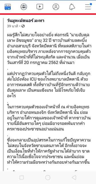 6 โพสต์เฟซบุ๊คของ นายวันมูหะมัดนอร์ มะทา