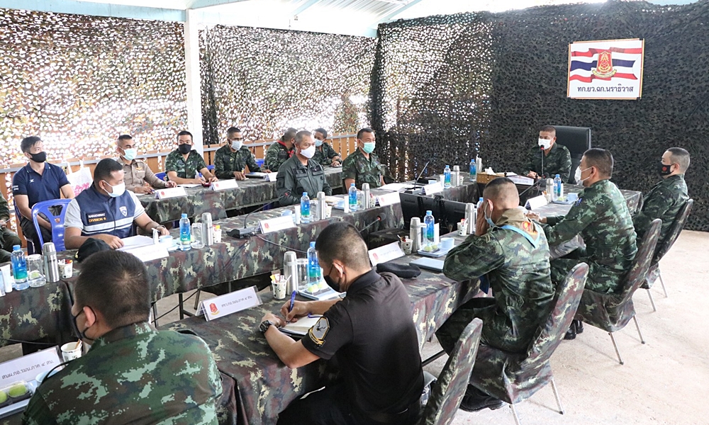 เมื่อเวลา 14.00 น.วันนี้ ( 14 ม.ค.64 ) พล.ต.ไพศาล หนูสังข์ ผู้บัญชาการกองพลทหารราบที่15 ในฐานะผู้บังคับหน่วยเฉพาะกิจนราธิวาส เป็นประธานการประชุมกำหนดมาตรการเพิ่มความเข้มงวดในการควบคุมพื้นที่ตามแนวชายแดน โดยมี พ.ท.ทวีรัตน์ เบญจาทิกุล ผู้บังคับกองพันทหารราบที่ 1 กรมทหารราบที่ 151 ในฐานะผู้บังคับหน่วยเฉพาะกิจ30 , ฝ่ายปกครอง ,เจ้าหน้าที่ตำรวจ และส่วนราชการที่เกี่ยวเข้าร่วมการประชุม ณ ที่ทำการทางยุทธวิธีหน่วยเฉพาะกิจนราธิวาส ( หน่วยเฉพาะนราธิวาส 30) ต.ปาเสมัส อ.สุไหงโกลก จ.นราธิวาส