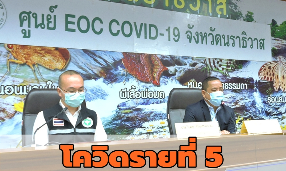 นราธิวาสแถลงพบผู้ป่วยติดเชื้อโควิดระลอกใหม่รายที่ 5 เป็นชายทำงานร้านอาหารในมาเลเซีย เดินทางผ่านช่องทางธรรมชาติเข้าไทย แต่ยอมไปพบเจ้าหน้าที่กักตัวตามระเบียบ สุดท้ายเจอโควิด เร่งเก็บตัวอย่างผู้สัมผัสเสี่ยงสูง 26 รายส่งตรวจ ด้านปัตตานี รองผู้ว่าฯเผยพบต่างด้าวซุกรีสอร์ทติดเชื้อ 2 ราย และคนไทยจากมาเลย์ 1 ราย ส่งรักษาตัว รพ.โคกโพธิ์