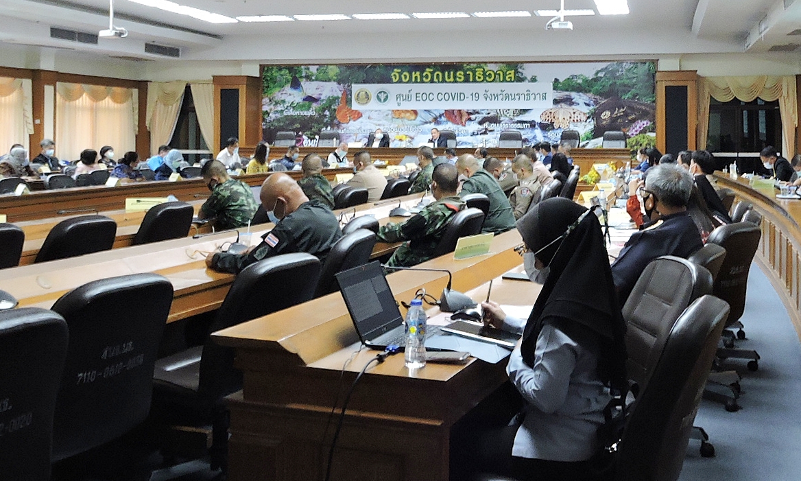 วันที่ 22 ม.ค.64 ณ ห้องประชุมพระนราภิบาล ชั้น 5 ศาลากลางจังหวัดนราธิวาส อ.เมือง จ.นราธิวาส นายเจษฎา จิตรัตน์ ผู้ว่าราชการจังหวัดนราธิวาส ในฐานะประธานกรรมการโรคติดต่อ จ.นราธิวาส พร้อมด้วยนายแพทย์วิเศษ สิรินทรโสภณ นายแพทย์สาธารณสุขจังหวัดนราธิวาส ร่วมแถลงข่าวสถานการณ์การแพร่ระบาดของโรคติดเชื้อไวรัสโคโรนา 2019 (COVID-19) จ.นราธิวาส ครั้งที่ 2 ภายใต้ศูนย์ปฏิบัติการภาวะฉุกเฉิน (EOC)