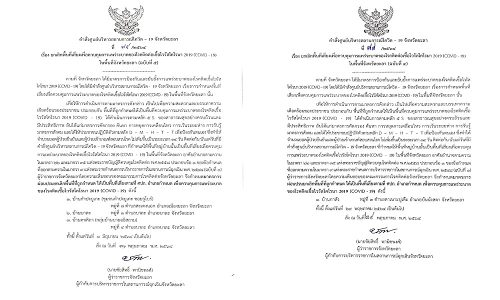 @@ ศบค.ยะลา ยกเลิกพื้นที่เสี่ยงอีก 4 หมู่บ้าน