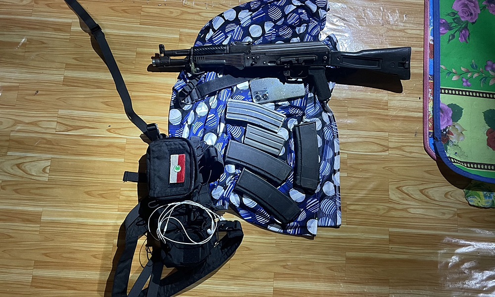 จากนั้นเจ้าหน้าที่ได้ขอความร่วมมือนำตัวไปตรวจค้นภายในบ้าน พบอาวุธปืน AK 102 จำนวน 1 กระบอก ตั้งพิงอยู่บริเวณฝาผนัง พร้อมซองกระสุนปืน จำนวน 5 ซอง และกระเป๋าคาดเอวสีดำ ที่มีตราสัญลักษณ์ BRN เย็บติดไว้บริเวณด้านหน้า เจ้าหน้าที่จึงได้ควบคุมตัวไปสอบปากคำ
