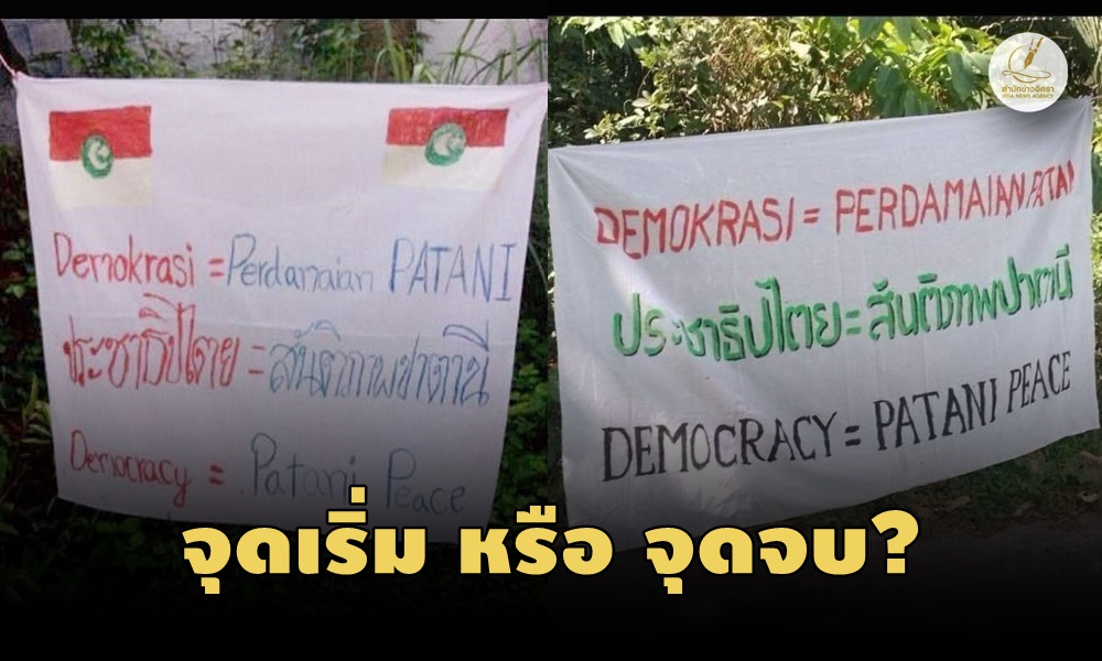 -ต้องสนับสนุนการเลือกตั้ง เพราะมีการเขียนป้ายผ้าว่า “ประชาธิปไตย เท่ากับ สันติภาพปาตานี”