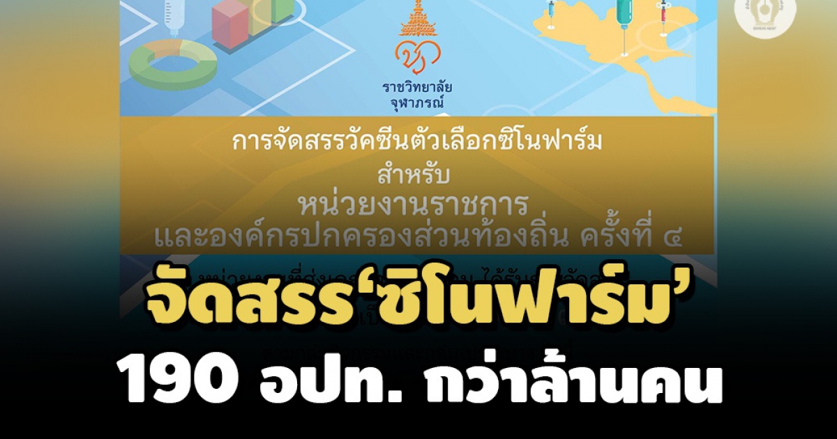 ราชวิทยาลัยจุฬาภรณ์เผยรายชื่อ อปท.รับจัดสรร'ซิโนฟาร์ม'ครั้งที่ 2-ดับ 4 คน ไม่เกี่ยววัคซีน