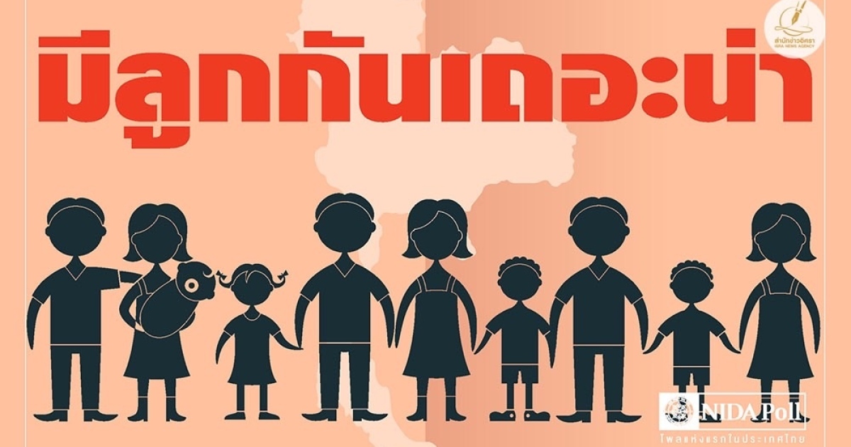 นิด้าโพล เผยผลสำรวจ 'มีลูกกันเถอะน่า' ชี้กลุ่มตัวอย่าง 44% ไม่อยากมีลูก เหตุผลไม่อยากเพิ่มค่าใช้จ่าย-ไม่อยากมีภาระ-ต้องการชีวิตอิสระ-ห่วงลูกว่าจะอยู่อย่างไรในสภาพสังคมปัจจุบัน-กลัวเลี้ยงไม่ดี