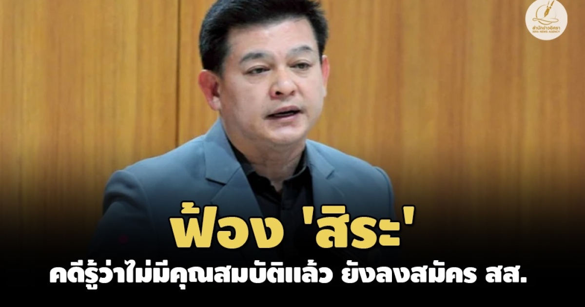 อัยการยื่นฟ้อง 'สิระ เจนจาคะ' อดีต สส.พลังประชารัฐ คดีรู้อยู่แล้วว่าไม่มีคุณสมบัติแล้วสมัคร สส. จากเหตุเคยถูกพิพากษาจำคุกคดีฉ้อโกง ปี 2538 ศาลให้ประกัน 1.1 เเสน