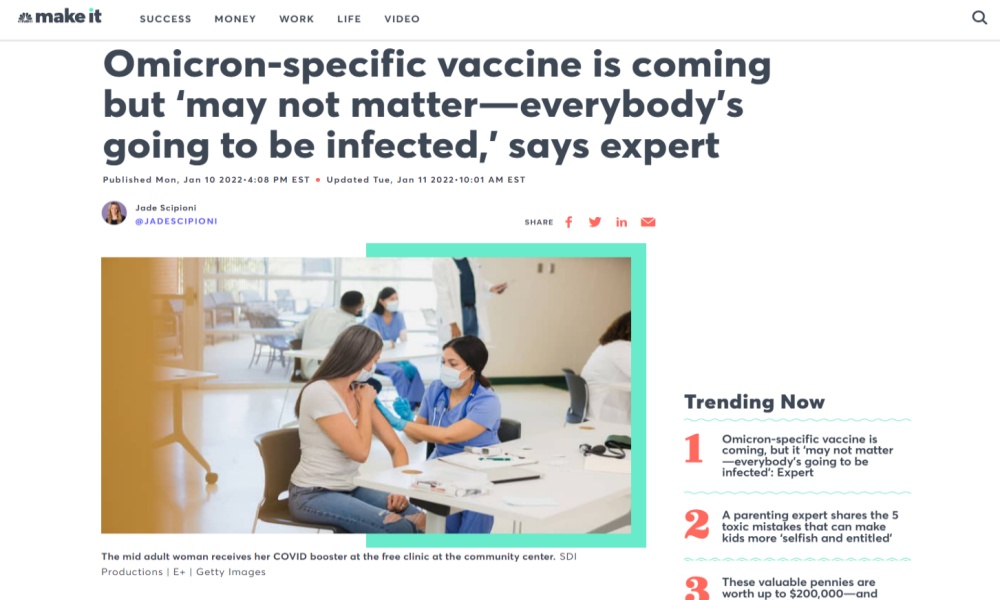 "แต่ก็เริ่มมีหลักฐานที่ให้ข้อมูลในแง่บวกแล้วว่าวัคซีนในโดสสามนั้นน่าจะมีการปกป้องที่มากกว่าต่อไวรัสโควิดสายพันธุ์โอไมครอน"