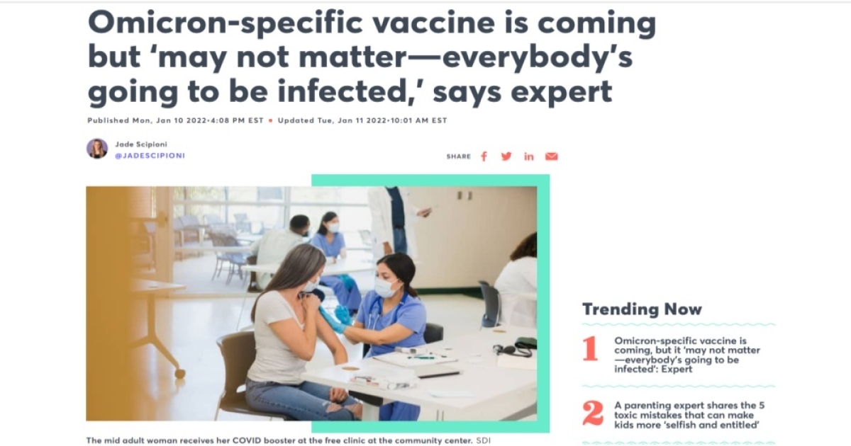 วัคซีนเฉพาะสายพันธุ์โอไมครอน ของบริษัทไฟเซอร์ที่จะออกมาในเดือน มี.ค.นี้นั้นอาจจะช้าเกินไปแล้ว เนื่องจากช่วงเวลาที่มีความต้องการวัคซีนเฉพาะสำหรับโควิดสายพันธุ์โอไมครอนมากที่สุด จะอยู่ในช่วงเดือน ธ.ค.ที่ผ่านมา