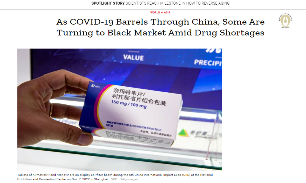 อย่างไรก็ตามยาแพกซ์โลวิดและยาโมลนูพิราเวียร์ถือเป็นสิ่งที่ขาดแคลนมากในประเทศจีนที่มีประชากรกว่า 1.4 พันล้านคน เนื่องจากว่าต้องนำมาใช้รักษาผู้ป่วยโควิด-19 โดยล่าสุดมีรายงานข่าวว่าในเดือน ธ.ค.จีนมียอดผู้เสียชีวิตในโรงพยาบาลสูงถึงเกือบ 60,000 ราย ซึ่งทั้งยาแพกซ์โลวิดและยาโมลนูพิราเวียร์นั้นพบว่าปัจจุบันถูกขายในตลาดมืดด้วยราคาพุ่งขึ้นถึง 8 เท่าเมื่อเทียบกับในราคาตลาดปัจจุบัน