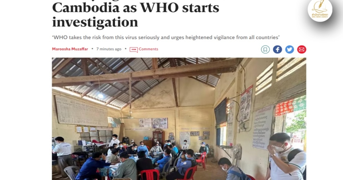 สำนักข่าวอิศรา (www.isranews.org) รายงานข่าวเกี่ยวกับการระบาดของไข้หวัดนกในประเทศกัมพูชาว่าล่าสุดองค์การอนามัยโลกหรือ WHO ได้ออกมาบรรยายแล้วว่าสถานการณ์ในประเทศกัมพูชานั้นมีความน่าเป็นห่วง
