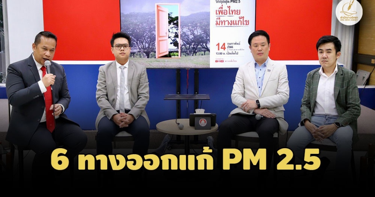 'วิกฤตฝุ่น PM 2.5 เพื่อไทยมีทางแก้ไข' พรรคเพื่อไทยมีแนวคิดที่จะผลักดันเป็นนโยบายพรรคเพื่อไทยแก้วิกฤต PM 2.5 ใน 6 ด้านได้แก่