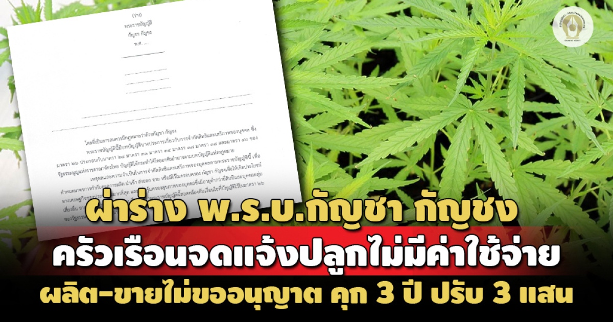 ปลูกกัญชง กัญชาในครัวเรือน ไม่มีค่าจดแจ้ง