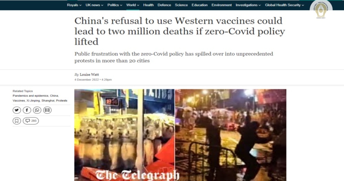 สำนักขาวอิศรา (www.isranews.org) รายงานข่าวเกี่ยวกับสถานการณ์โควิด-19 ในประเทศจีนว่ามีการประเมินว่าการที่นายสี จิ้นผิง ประธานาธิบดีจีนได้ปฏิเสธการใช้วัคซีนจากตะวันตก อาจจะนำไปสู่การเสียชีวิตของประชากรกว่า 2 ล้านคนได้ ถ้าหากเขายกเลิกนโยบายโควิดเป็นศูนย์