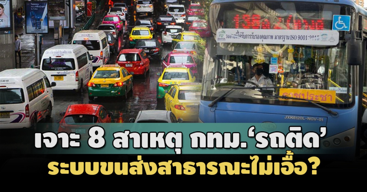 นายสุรพงษ์ เมี้ยนมิตร รองผู้อำนวยการสำนักงานนโยบายและแผนการขนส่งและจราจร (สนข.) เปิดเผยกับสำนักข่าวอิศรา (www.isranews.org) ถึงสาเหตุปัญหาการจราติดขัดในพื้นที่กรุงเทพมหานครว่า ปัญหารถติดในพื้นที่กรุงเทพฯ เป็นปัญหาที่สะสมมานาน มีผลสืบเนื่องมาตั้งแต่ในอดีต จากการศึกษาสาเหตุหลักด้านวิชาการในปัจจุบัน พบว่ามี 8 สาเหตุ ดังนี้