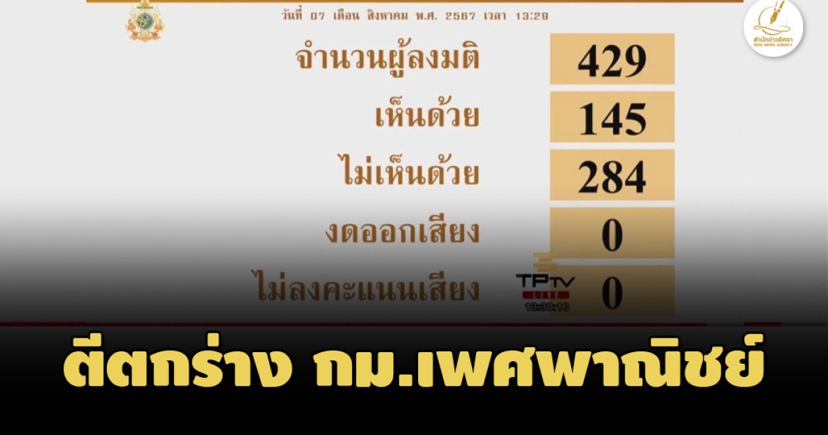 สภาตีตก ร่าง กม.เพศพาณิชย์ ปลดล็อกเซ็กซ์ทอย-หนังโป๊ ด้วยคะแนน 284 ต่อ 145 ฝ่ายเสนออ้างสร้างรายได้-หนุนเศรษฐกิจ ฝ่าย รบ.ค้าน ชี้ไทยมีขนบธรมมเนียม หวั่นเพิ่มการคุกคามทางเพศเพิ่ม