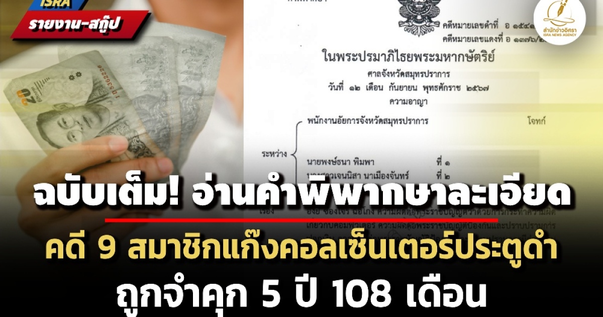 ต่อไปนี้เป็นรายละเอียดคำพิพากษาคดีหมายเลขดำที่ อ1541/2565 คดีแก๊งคอลเซ็นเตอร์ประตูดำ 13 ราย โทรศัพท์หลอกลวงประชาชน ทั้งหมด 78 หน้า มีรายละเอียดที่สำคัญและน่าสนใจ ดังนี้