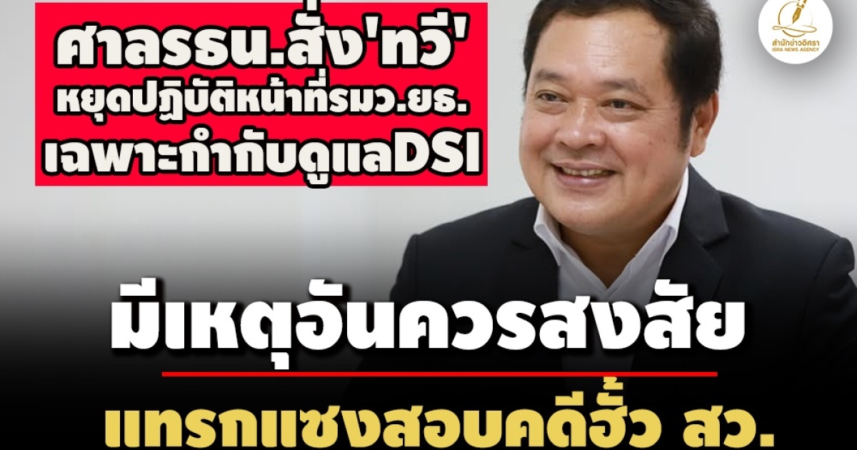 ศาล รธน.ออกคำสั่งให้ 'ทวี สอดส่อง' หยุดปฏิบัติหน้าที่ รมว.ยธ.เฉพาะกำกับดูแล DSI ชี้ปรากฏเหตุอันควรสงสัยแทรกแซงกระบวนการสอบคดีฮั้ว สว. - 'ภูมิธรรม เวชยชัย' รอด