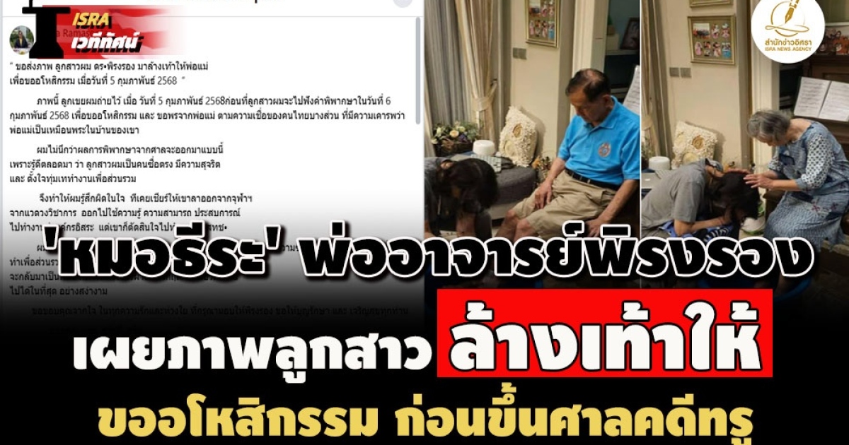 หมายเหตุ สำนักข่าวอิศรา (www.isranews.org) : ในช่วงบ่ายวันที่ 8 ก.พ.2568 ศ.(พิเศษ) นพ.ธีระ รามสูต บิดา ศ.ดร.พิรงรอง รามสูต กรรมการกิจการกระจายเสียง กิจการโทรทัศน์ และกิจการโทรคมนาคมแห่งชาติ (กสทช.) ด้านกิจการโทรทัศน์ ได้โพสต์ข้อความผ่านเฟซบุ๊ก Teera Ramasoota โดยระบุว่า ขอส่งภาพ ลูกสาวผม ดร.พิรงรอง มาล้างเท้าให้พ่อแม่เพื่อขออโหสิกรรม เมื่อวันที่ 5 กุมภาพันธ์ 2568 ซึ่งเป็นวันก่อนที่ ศ.ดร.พิรงรอง รามสูต จะเดินทางเข้ารับฟังคำพิพากษาศาลอาญาคดีทุจริตและประพฤติมิชอบกลาง ที่ตัดสินลงโทษจำคุก 2 ปี ในคดีถูกบริษัท ทรูดิจิทัล กรุ๊ป จำกัด ฟ้องร้องในข้อหาเจ้าพนักงานปฏิบัติหน้าที่โดยมิชอบตามมาตรา 157 ปมออกหนังสือเตือนทีวีดิจิทัลมีโฆษณาแทรก ในวันที่ 6 ก.พ.2568 ที่ผ่านมา