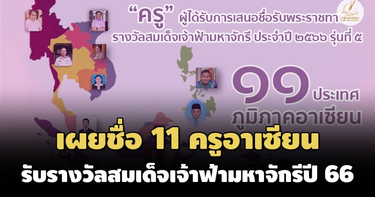 มูลนิธิรางวัลสมเด็จเจ้าฟ้ามหาจักรีคัดเลือก 11 ครูดีจาก 11 ประเทศในภูมิภาคอาเซียน รับรางวัลสมเด็จเจ้าฟ้ามหาจักรีประจำปี 2566 ในวันที่ 17 ต.ค. 66 นี้ ส่วนของประเทศไทยได้แก่ ‘นิวัฒน์ เงินงามมีสุข’ครูศูนย์การเรียนชุมชนชาวไทยภูเขา จ.ตาก เป็นผู้ได้รางวัล