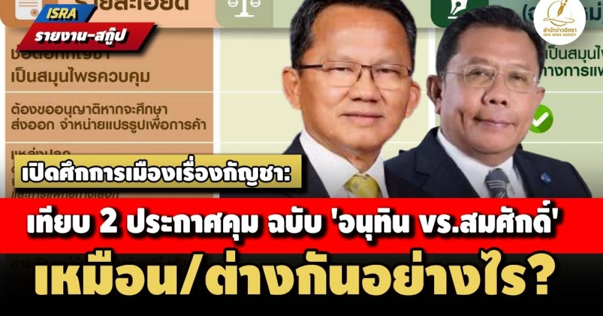 น่าสนใจว่า ประกาศกระทรวงสาธารณสุขควบคุมกัญชา ในยุคของ นายอนุทิน ชาญวีรกูล และ นายสมศักดิ์ เทพสุทิน เหมือนหรือแตกต่างกันอย่างไร?