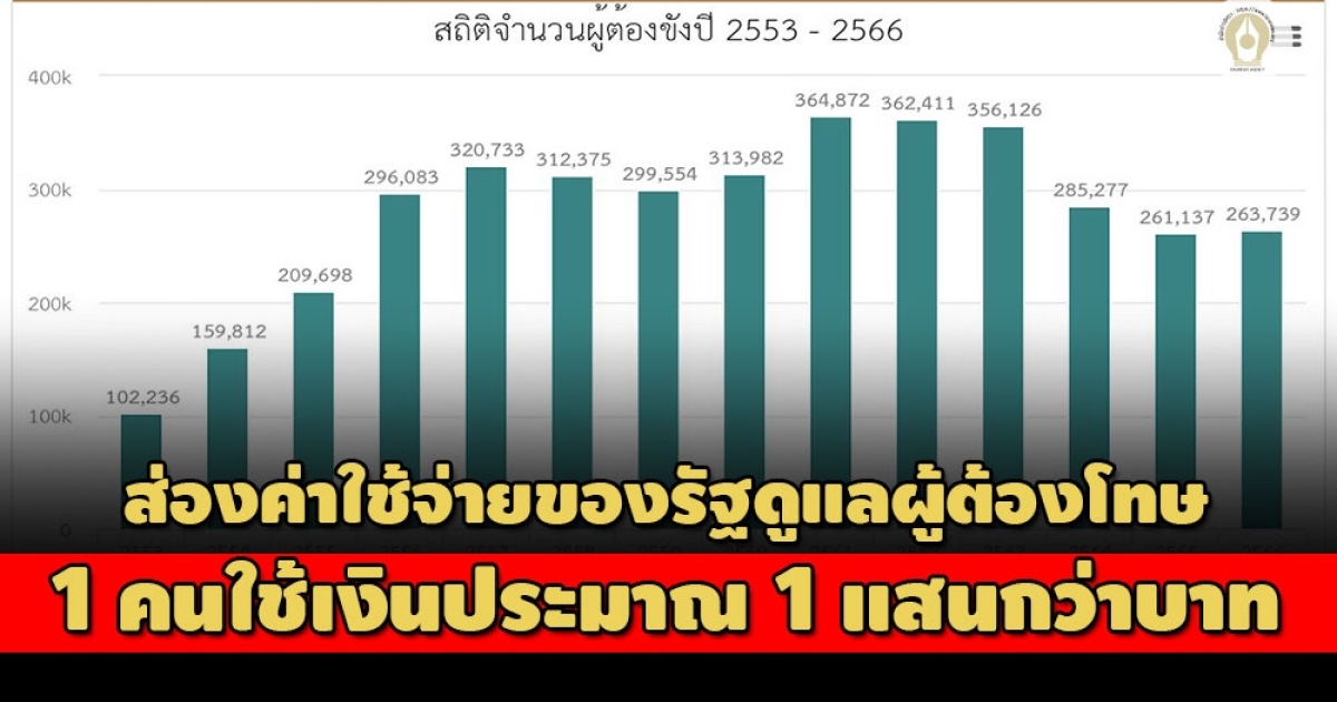รวมต้นทุนต่อหน่วยที่กรมราชทัณฑ์ใช้กับผู้ต้องขังหนึ่งคน คือ 44,511.64 และ 46,771.65 บาทสำหรับผู้ต้องขังคดียาเสพติด