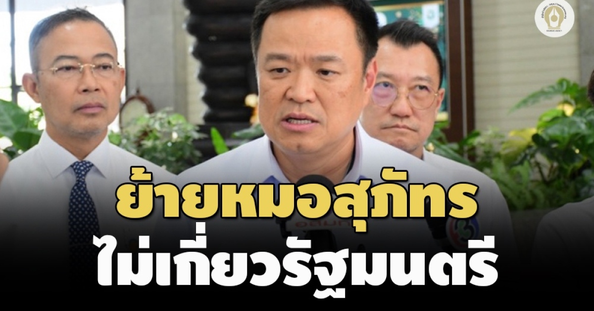 ‘อนุทิน’ ตอบปม ‘สธ.’ ย้าย ‘หมอสุภัทร’ พ้น รพ.จะนะ เป็นเรื่องของฝ่ายประจำ ชี้เคยย้ายผอ.รพ.ไปร้อยเอ็ดก็มีการพัฒนา ก่อนย้อนว่า เป็นปธ.ชมรมแพทย์ชนบทต้องไปพัฒนาที่อื่นให้เจริญด้วยหรือไม่
