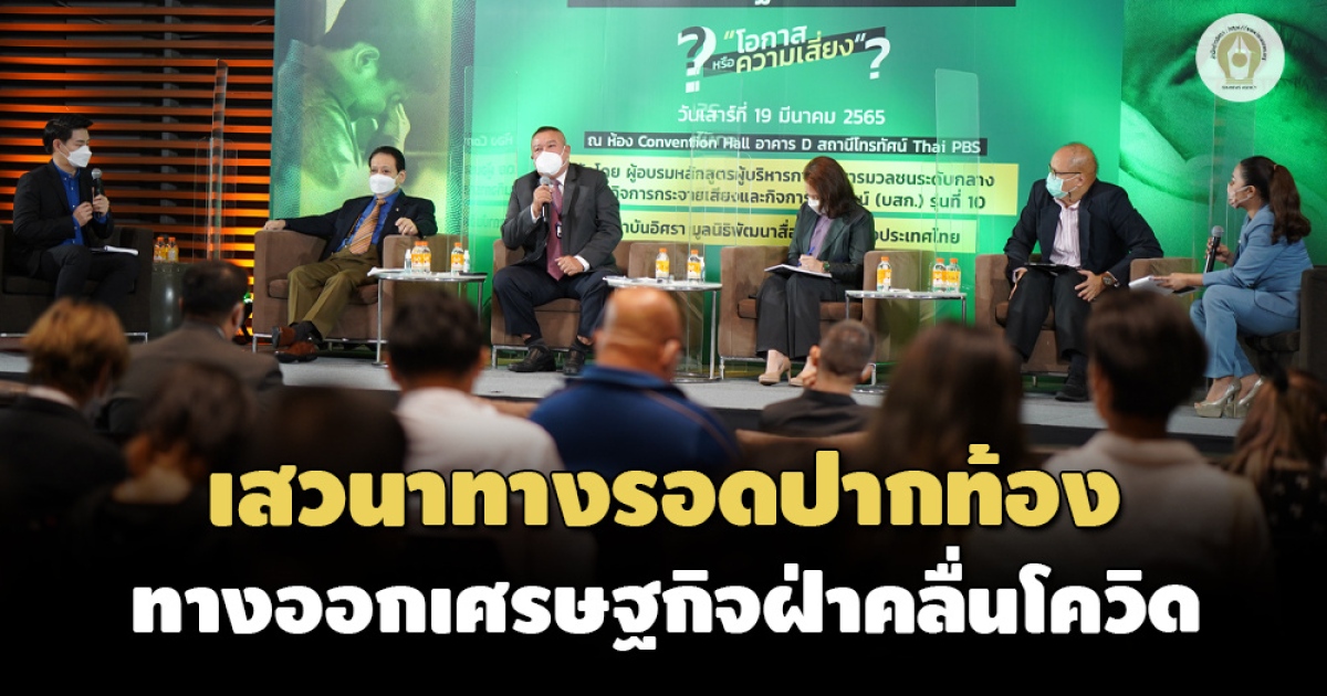 ผู้สื่อข่าวรายงานว่า เมื่อวันที่ 19 มี.ค.2565 ผู้เข้าอบรมหลักสูตรผู้บริหารการสื่อสารมวลชนระดับกลาง ด้านกิจการกระจายเสียงและกิจการโทรทัศน์ (บสก.) รุ่นที่ 10 จัดเสวนาในหัวข้อ “ทางรอดปากท้อง ทางออกเศรษฐกิจฝ่าคลื่นโควิด : โอกาสหรือความเสี่ยง?”