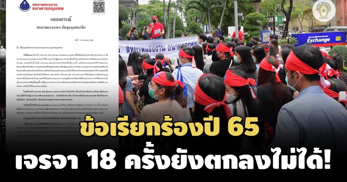 สหภาพแรงงานธนาคารกรุงเทพแถลงการณ์ความคืบหน้าข้อเรียกร้องปี 2565 15 ประการ เผยเจรจาไปแล้ว 18 ครั้ง แต่ยังตกลงกันไม่ได้ ด้าน บมจ. ยันไม่สามารถเปิดเผยข้อมูลต้องไปติดตามจากต้นเรื่อง