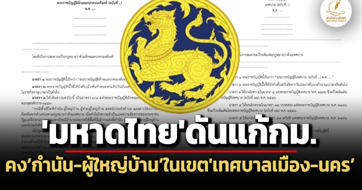 ‘มหาดไทย’ ดันแก้ไข ‘พ.ร.บ.ลักษณะปกครองท้องที่-พ.ร.บ.เทศบาล’ คงตำแหน่ง ‘กํานัน-ผู้ใหญ่บ้าน-แพทย์ประจำตำบล-สารวัตรกํานัน-ผู้ช่วยผู้ใหญ่บ้าน’ ในพื้นที่ที่ยกระดับเป็น ‘เทศบาลเมือง-นคร’
