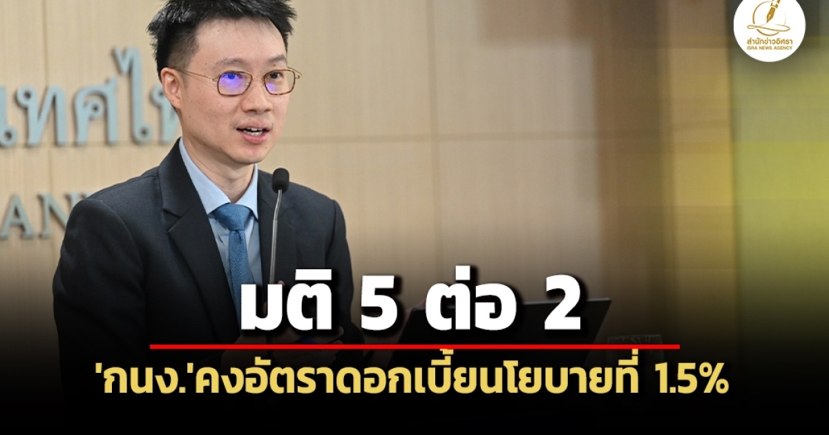 มติ 6 ต่อ 1! กนง.คงดอกเบี้ยนโยบาย 2.5% ชี้สอดคล้องการขยายตัวศก.-กังวล‘หนี้ครัวเรือน’สูง